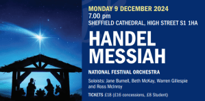 The Sheffield Bach Choir was pleased to be able to present our annual rendition of Handel’s marvellous oratorio, accompanied by the National Festival Orchestra with four outstanding soloists.